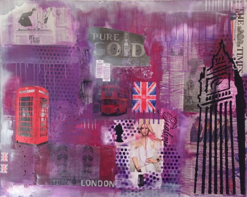 "London my love" Acryl- Collage auf Leinwand, 100 x 80 cm